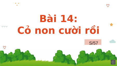 ệ ng/ ngh, tr/ ch ho c ặ êt/ êch. 3. a. Phát tri n ể v n ố t v ừ b ề o ả v ệ môi trư ng ờ ; bi t ế s d ử n ụ g d u ấ ph y ẩ trong câu. 3. b. Bi t ế vi t ế l i ờ xin l i ỗ . 4. Tìm đ c ọ m ở r n ộ g đư c ợ sách, báo vi t ế v ề các ho t ạ đ n ộ g gi ữ gìn m i ỗ trư n ờ g xanh, s c ạ h, đ p ẹ ở nhà trư n ờ g. Giáo viên: Ph m ạ Kim Chi Bài 14: Cỏ non cười rồi S/57