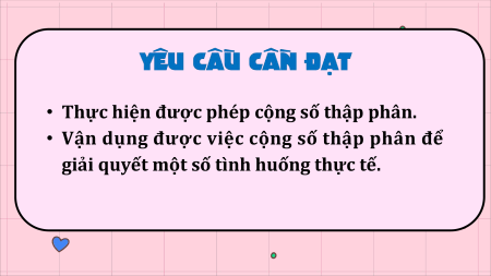 • Thực hiện được phép cộng số thập phân.