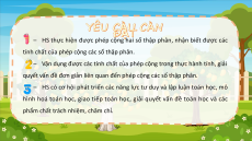 – HS thực hiện được phép cộng hai số thập phân, nhận biết được các