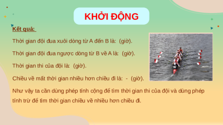 Như vậy ta cần dùng phép tính cộng để tìm thời gian thi của đội và dùng phép