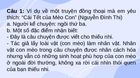 Câu 1: Ví dụ về một truyện đồng thoại mà em yêu