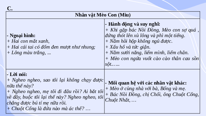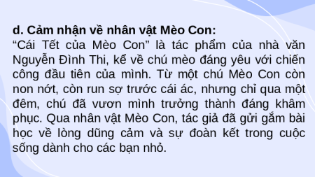 d. Cảm nhận về nhân vật Mèo Con:
