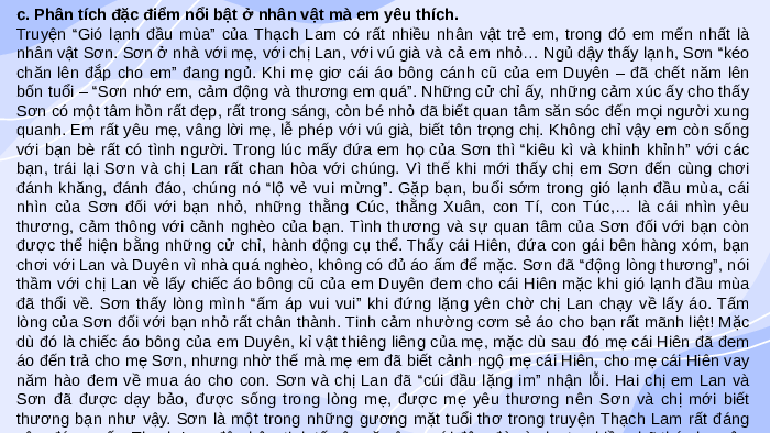 c. Phân tích đặc điểm nổi bật ở nhân vật mà em yêu thích.