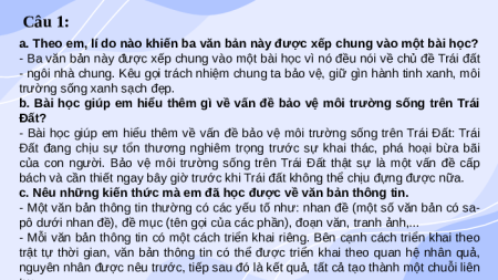 - Ba văn bản này được xếp chung vào một bài học vì nó đều nói về chủ đề Trái đất