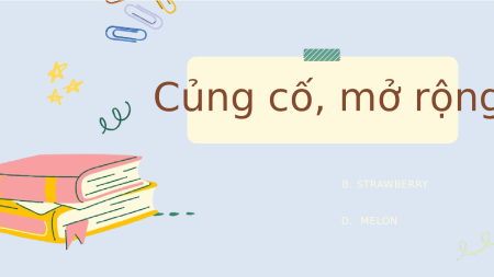 BÀI 9. HÔM NAY VÀ NGÀY MAI Củng cố, mở rộng Thực hành đọc Củng cố, mở rộng B. STRAWBERRY D. MELON