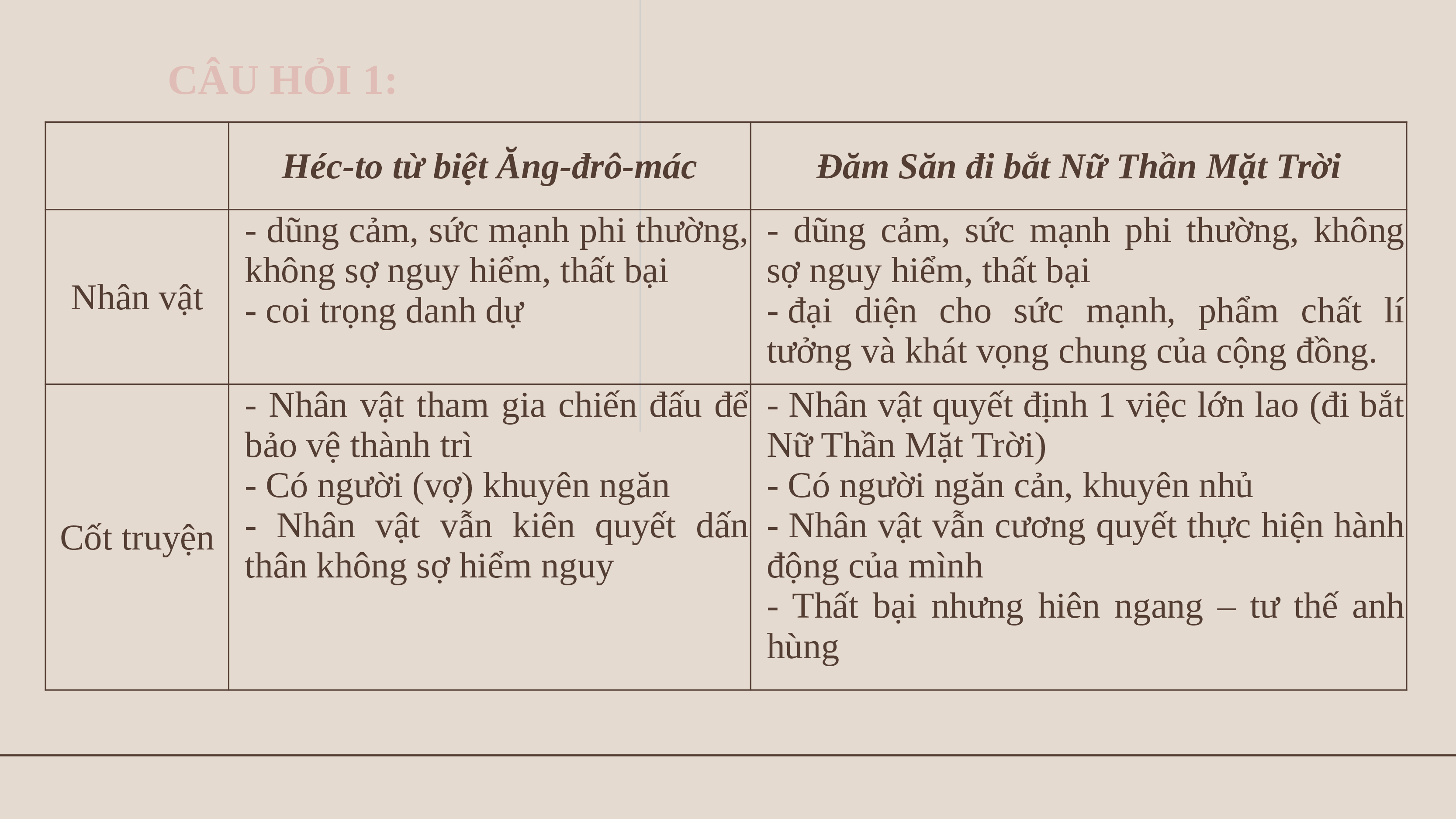 - Nhân vật tham gia chiến đấu để - Nhân vật quyết định 1 việc lớn lao (đi bắt bảo vệ thành trì Nữ Thần Mặt Trời)