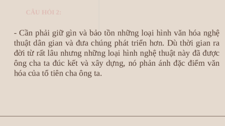 - Cần phải giữ gìn và bảo tồn những loại hình văn hóa nghệ