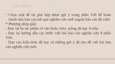 trình thể hiện đời sống nhân vật trên sân khấu. CÂU HỎI 2: