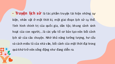 - Truyện lịch sử là tác phẩm truyện tái hiện những sự