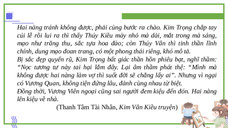 Bị sắc đẹp quyến rũ, Kim Trọng bất giác thần hồn phiêu bạt, nghĩ thầm: