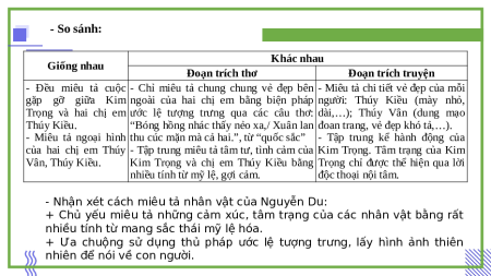 mạo như trăng thu, sắc tựa hoa đào; còn Thúy Vân thì tinh thần lĩnh