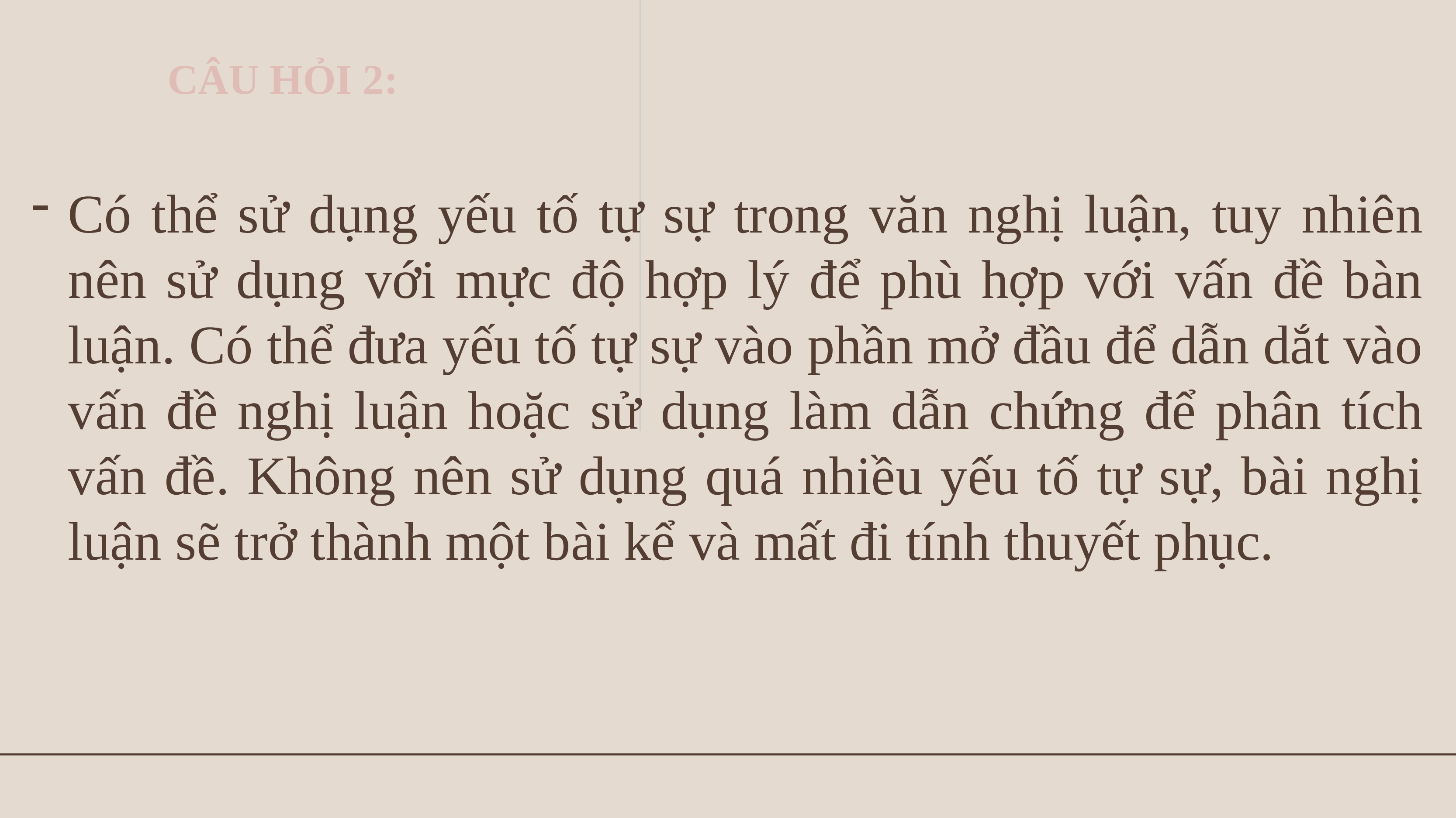 vấn đề. Không nên sử dụng quá nhiều yếu tố tự sự, bài nghị