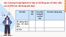 Câu 1 (trang 97 sgk Ngữ văn 8 Tập 1): Kẻ bảng vào vở theo mẫu