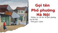 - Nhiệm vụ: kể tên 36 phố phường của Hà Nội - Thời gian: 3 phút
