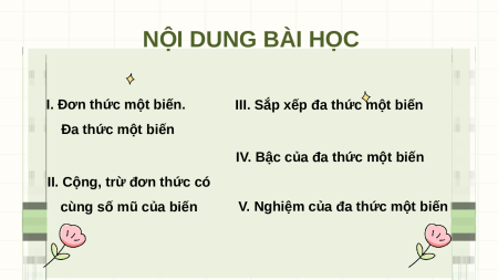 NGHIỆM CỦA ĐA THỨC MỘT BIẾN NỘI DUNG BÀI HỌC
