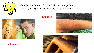 Theo em, những phản ứng đó có lợi ích gì cho cơ thể? Khi trời rét Khi trời nóng