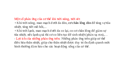 Nêu một số phản ứng của cơ thể khi trời nóng, trời rét.