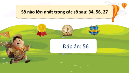 Số nào lớn nhất trong các số sau: 34, 56, 27 Đáp án: 56