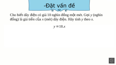 Đại lượng tỉ lệ thuận -Đặt vấn đề Cho bi t ế dây đi n ệ có giá 10 nghìn đ ng m ồ t ộ mét. G i ọ y (nghìn đ ng) là ồ giá ti n ề c a