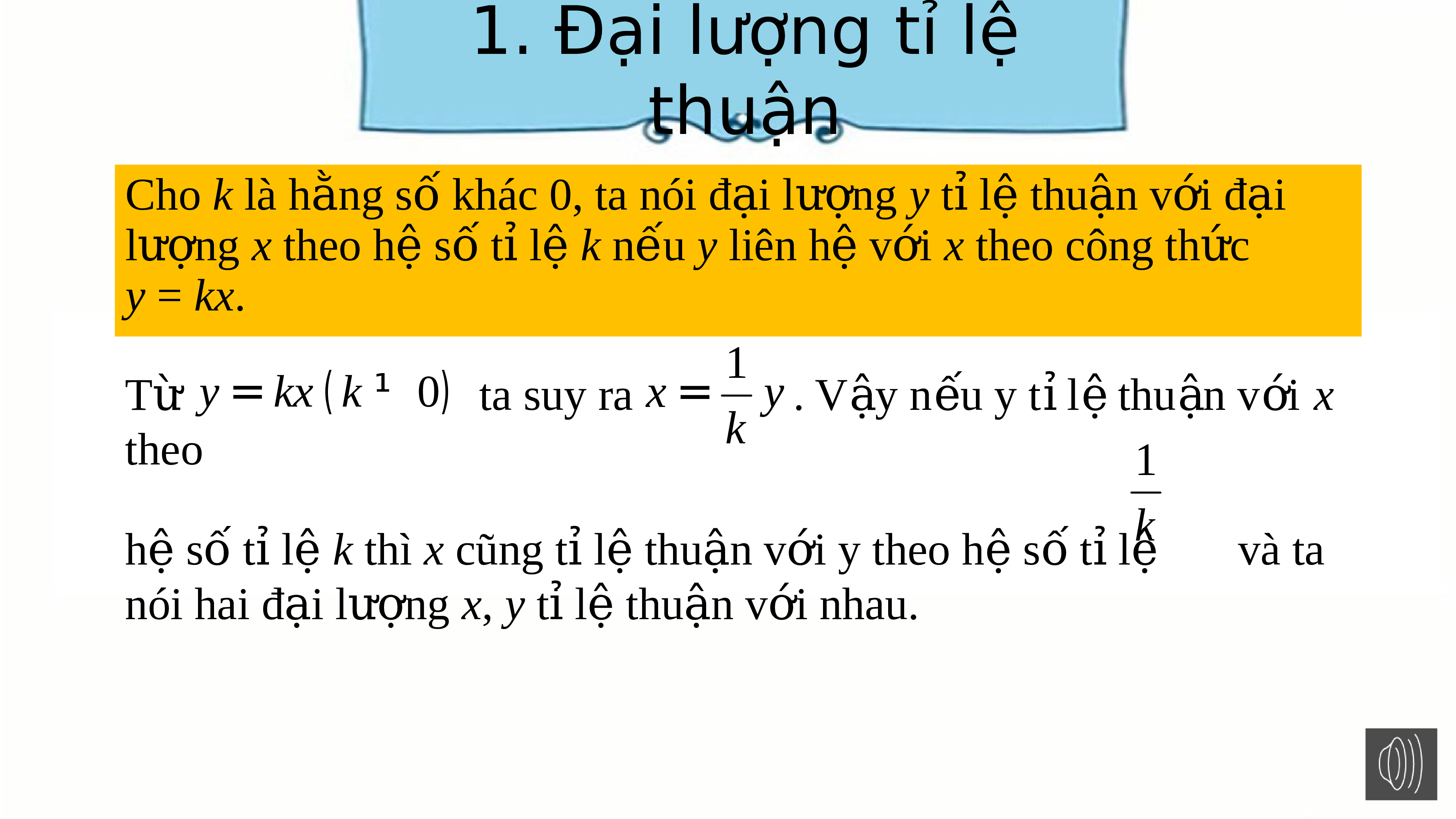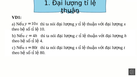 ệ k thì x cũng tỉ l ệ thu n v ậ i ớ y theo h ệ s ố t l ỉ k ệ và ta nói hai đ i ạ lư ng ợ x, y t l ỉ ệ thu n ậ v i nhau. ớ