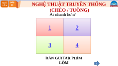 NGHỆ THUẬT TRUYỀN THỐNG VĂN 10 (CHÈO / TUỒNG) Ai nhanh hơn? 1 2 3 4 ĐÀN GUITAR PHÍM LÕM 6 4 NGỮ LỚP