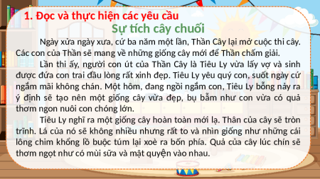 1. Đọc và thực hiện các yêu cầu Sự tích cây chuối