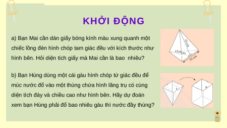 Giáo án powerpoint Diện tích xung quanh và thể tích của hình chóp tam giác đều, hình chóp tứ giác đều Toán 8 Chân trời sáng tạo