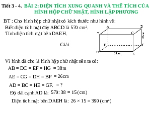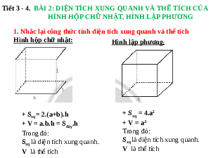 Tiết 3 - 4. BÀI 2: DIỆN TÍCH XUNG QUANH VÀ THỂ TÍCH CỦA