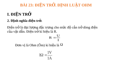 BÀI 23: ĐI N TR . Đ NH LU T OHM Ệ Ở Ị Ậ
