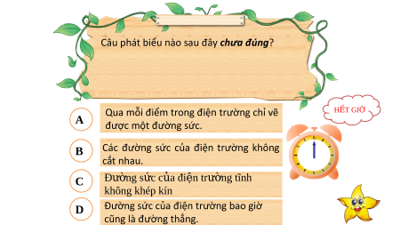 Các đường sức của điện trường không cắt nhau. C Đư n ờ g s c ứ c a ủ đi n t ệ rư ng ờ tĩnh không khép kín D