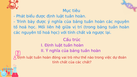 các nguyên tố hoá học) với tính chất và ngược lại. Cấu trúc I. Định luật tuần hoàn
