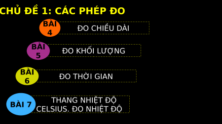 CHỦ ĐỀ 1: CÁC PHÉP ĐO BÀI ĐO CHIỀU DÀI 4 BÀI ĐO KHỐI LƯỢNG 5 BÀI ĐO THỜI GIAN 6 THANG NHIỆT ĐỘ