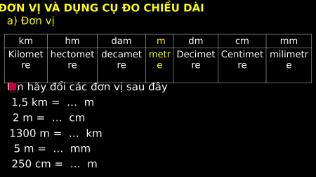 1. ĐƠN VỊ VÀ DỤNG CỤ ĐO CHIỀU DÀI a) Đơn vị