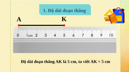 Độ dài đoạn thẳng AK là 5 cm, ta viết AK = 5 cm