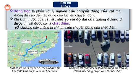 ậ lý nghiên c u ứ chuy n ể đ n ộ g c a ủ v t ậ mà không đ ề c p ậ đ n ế tác d ng ụ c a ủ l c ự lên chuy n ể đ ng. ộ Khi kích thư c ớ c a ủ v t ậ r t ấ nh ỏ so v i ớ đ ộ dài c a ủ quãng đ n ườ g đi được thì v t ậ đư c ợ coi là ch t ấ đi m ể . ( Ở chư ng ơ