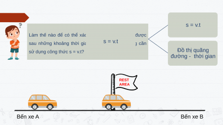 sử dụng công thức s = v.t? Đồ thị quãng đường - thời gian REST AREA Bến xe A Bến xe B MÔN KHOA HỌC TỰ NHIÊN 7