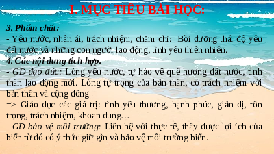 - GD đạo đức: Lòng yêu nước, tự hào về quê hương đất nước, tinh