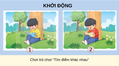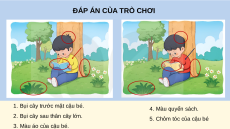 1. Bụi cây trước mặt cậu bé. 4. Màu quyển sách.