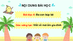 - Bộ bài giảng powerpoint Bài 4: Mái ấm gia đình Tiếng việt lớp 3 Cánh diều bao gồm đầy đủ các bài giảng trong cả năm. Bộ bài giảng được thiết kế theo phong cách hiện đại, đẹp mắt, trình bày chi tiết cho từng phần học và bám sát chương trình Sách giáo khoa Tiếng việt lớp 3 Cánh diều.