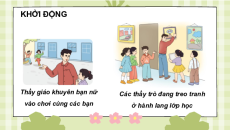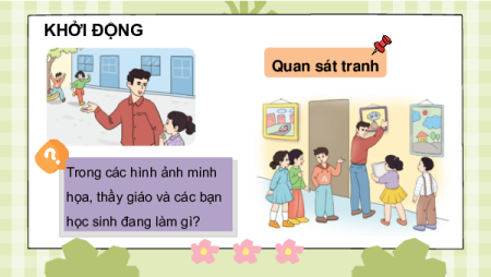 họa, thầy giáo và các bạn học sinh đang làm gì? KHỞI ĐỘNG
