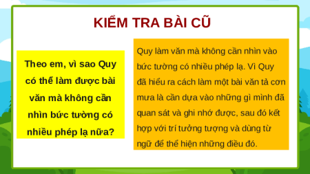 Quy làm văn mà không cần nhìn vào Theo em, vì sao Quy