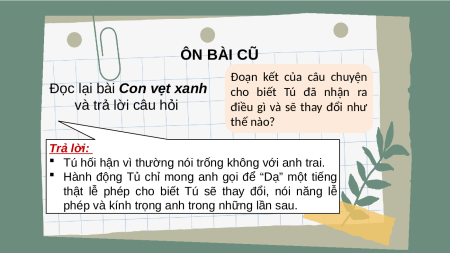 Đọc lại bài Con vẹt xanh cho biết Tú đã nhận ra và trả lời câu hỏi