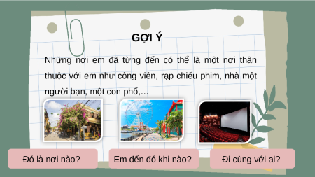 người bạn, một con phố,… Đó là nơi nào? Em đến đó khi nào? Đi cùng với ai?