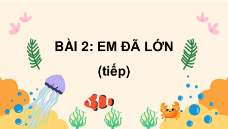 - Bộ bài giảng powerpoint Bài 2: Em đã lớn Tiếng việt lớp 3 Cánh diều bao gồm đầy đủ các bài giảng trong cả năm. Bộ bài giảng được thiết kế theo phong cách hiện đại, đẹp mắt, trình bày chi tiết cho từng phần học và bám sát chương trình Sách giáo khoa Tiếng việt lớp 3 Cánh diều.
