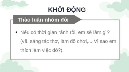 • Nếu có thời gian rảnh rỗi, em sẽ làm gì?
