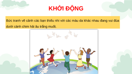 Bức tranh vẽ cảnh các bạn thiếu nhi với các màu da khác nhau đang vui đùa