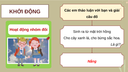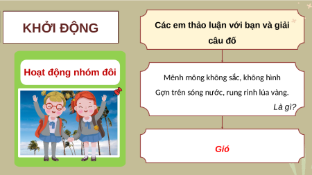 Các em thảo luận với bạn và giải KHỞI ĐỘNG câu đố