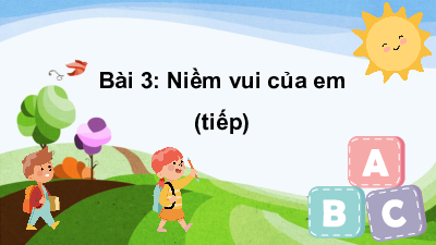 - Bộ bài giảng powerpoint Bài 3: Niềm vui của em Tiếng việt lớp 3 Cánh diều bao gồm đầy đủ các bài giảng trong cả năm. Bộ bài giảng được thiết kế theo phong cách hiện đại, đẹp mắt, trình bày chi tiết cho từng phần học và bám sát chương trình Sách giáo khoa Tiếng việt lớp 3 Cánh diều.