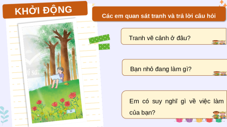 Các em quan sát tranh và trả lời câu hỏi Tranh vẽ cảnh ở đâu? Bạn nhỏ đang làm gì?
