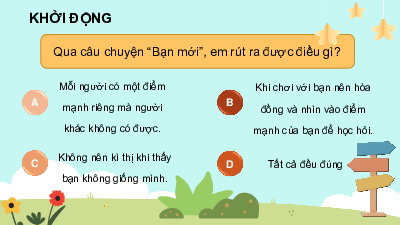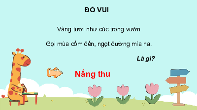 Không nên kì thị khi thấy C D Tất cả đều đúng bạn không giống mình. ĐỐ VUI Mùa gì dịu nắng Mây nhẹ nhàng bay Mùa thu Gió khẽ rung cây Lá vàng rơi rụng? ĐỐ VUI